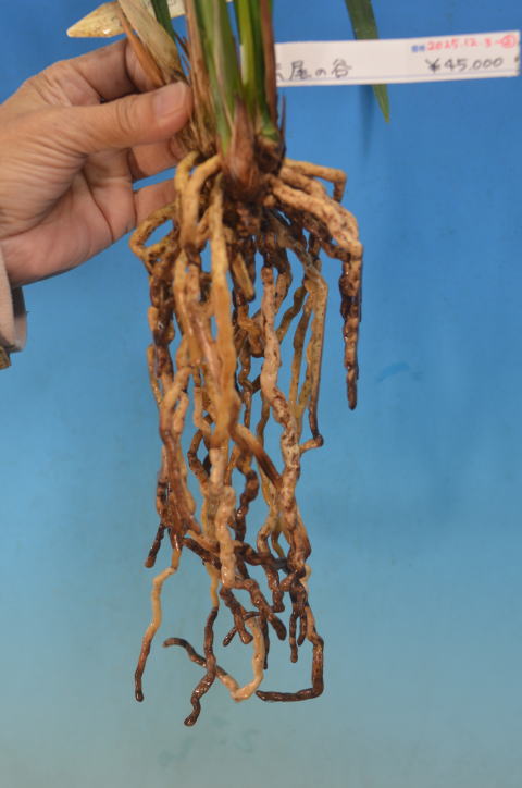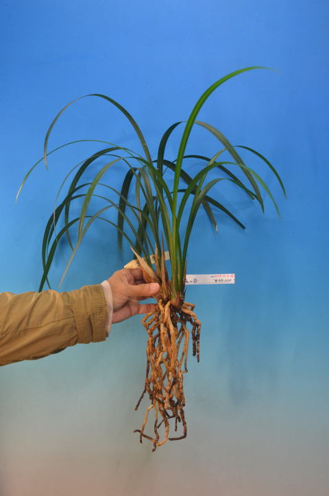 花の特徴:鹿児島県産の緑の濃い一文字咲きです。花弁にキレがあり、船底の大舌に濃い点を打つその迫力は圧巻の一言です。花軸、花間共に申し分なく、非の打ちどころのない優良品種です。