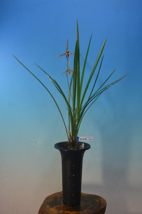 花の特徴:更紗一文字9㎝、大舌系ベタ系で、花間があります。この花は初花です。