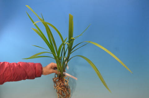 花の特徴:花の大きさは10㎝、舌は1.5㎝程で、花間が良くバランスの良い花です。数が少ない希少品種です。人吉球磨の展示会で総合優勝したこともある、間違いない実力を持った花です。