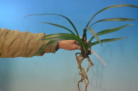 花の特徴:長崎県の登録品 花は青無点三角咲き大輪で、花間とバランスも良い花です。