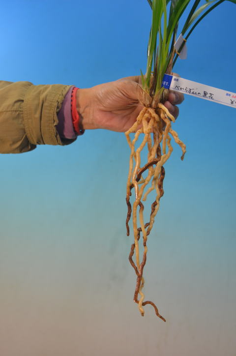 花の特徴:高知県産 黒花三角咲き大輪で、花は黒酔より弁幅があり、大きさは9㎝~10㎝になります。花間・バランスの良い花です。