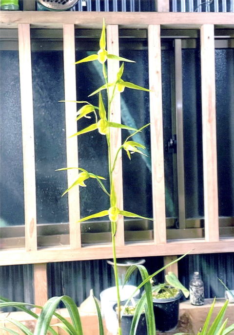 五弁淡緑色の一文字、最大で12㎝になります。広弁のキレのいい素心です。