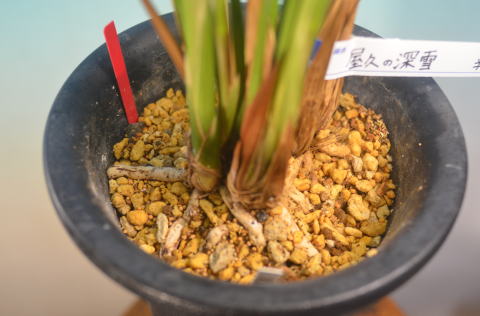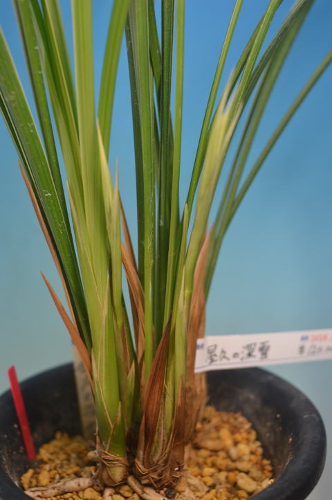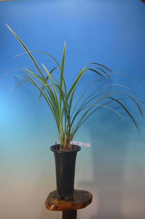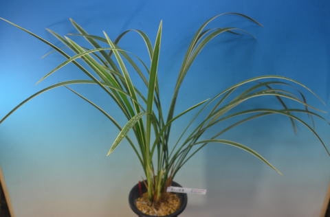 覆輪の葉芸が特徴の、雪白の覆輪がかかる青花です。