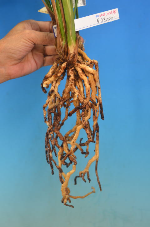 花の特徴:濃緑で内外弁に紅条がなく、一文字に近い中輪です。舌は先端ベタ舌です。