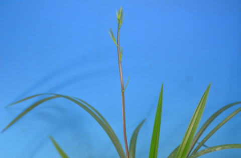 花の特徴:熊本県産の登録品 緑の濃い一文字に近い三角咲きで最大で9㎝程になります。 花間が最高にとれ、最大で80㎝ほど軸が伸びます。