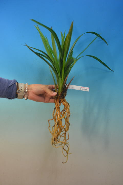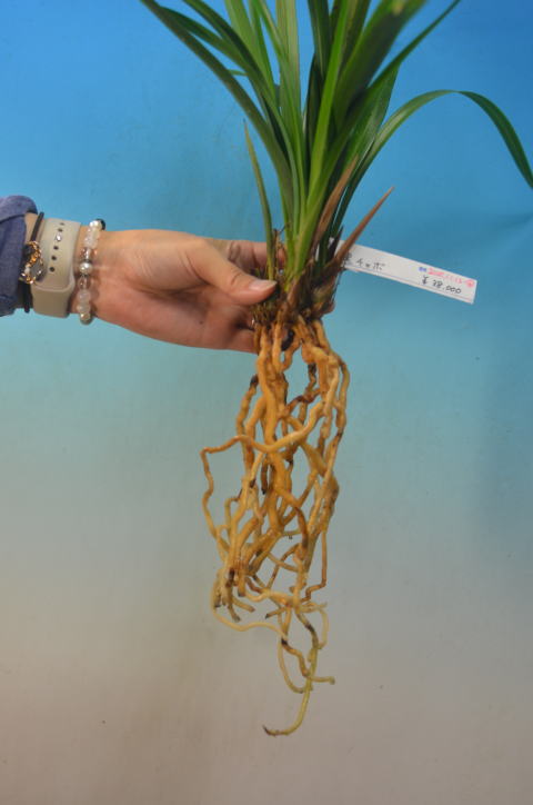 花の特徴:新芽のハカマの色が黒紫で上がり、厚葉で半羅紗が入る、成木に近い品です。