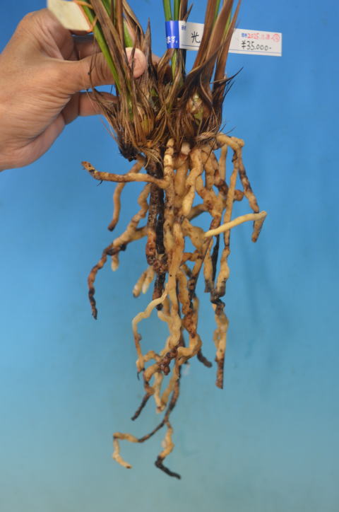 和歌山県の登録品で、紅平肩咲きの超大輪で、花は最大で15㎝程になります。昔からある登録品ですが大きい株はほとんど現存していない希少な品種になります。