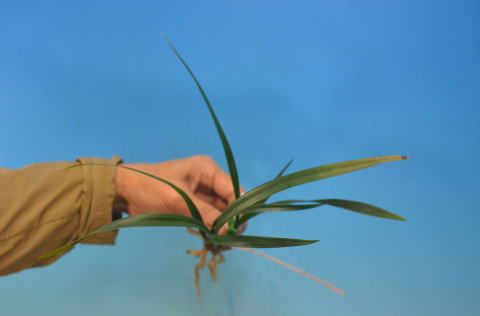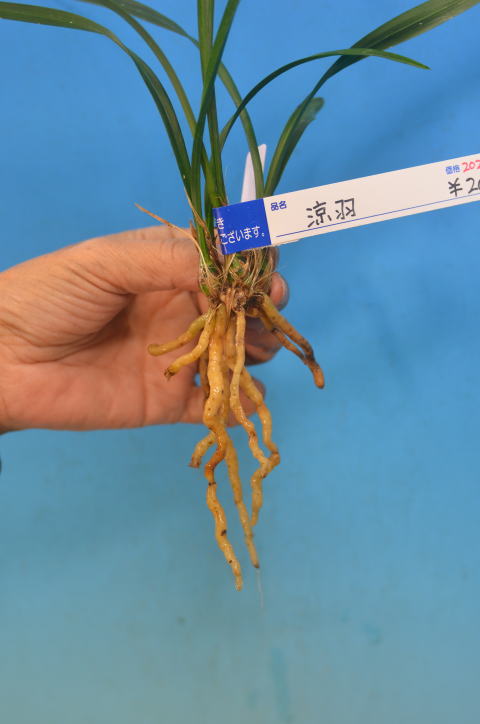 花の特徴:桃の入る青更紗三角咲きの中輪で、色合いの大変綺麗な花です。