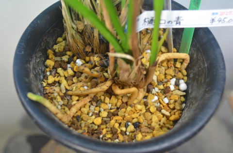 花の特徴:青平肩咲きに近い三角咲き大輪で最大11㎝くらいの短舌の無点系です。