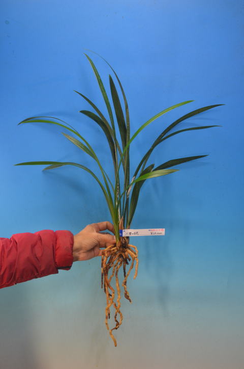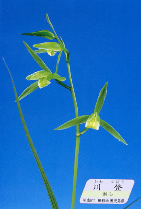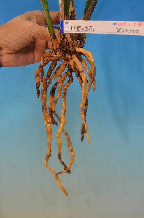 花の特徴:高知県産 素心三角咲き中輪で、花間もまあまあ良く、バランスの良い花です。