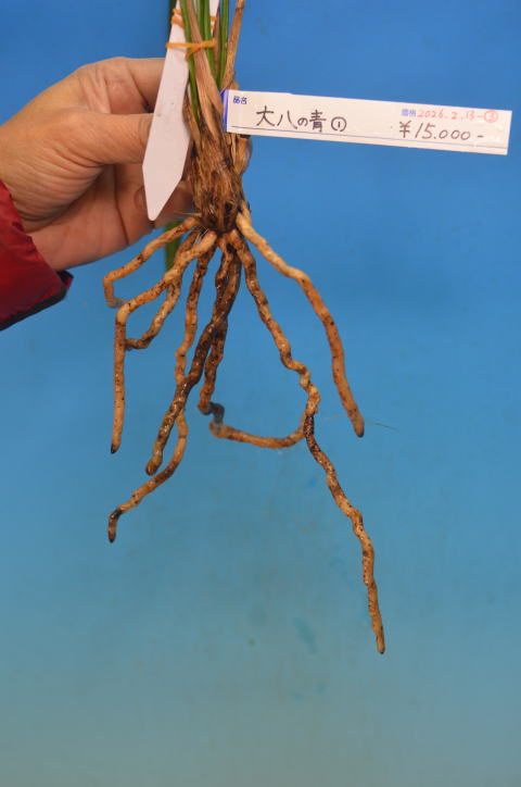 青一文字の最大13cmにもなる特大輪で白舌に赤のベタ舌系です。特に花間も良く当店が今まで見た青で一番いい花です