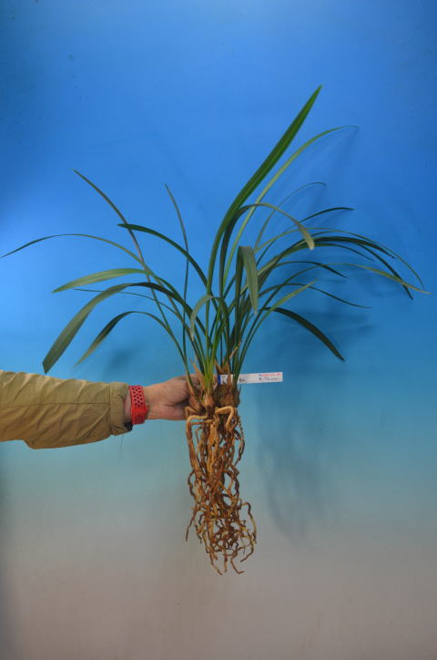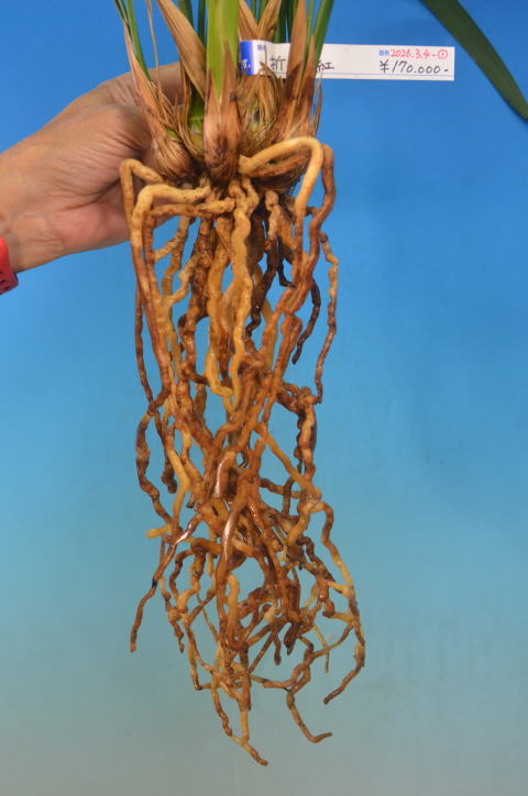 花の特徴:紅一文字に近い三角咲きの大輪で花の大きさは最大で11㎝程になりり、大円舌です。特に花間も良くバランスの取れた花です。とても数が少ない希少品種です。