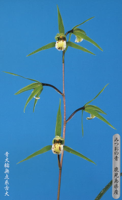 花の特徴:青花三角咲き大輪大舌の無点系です。